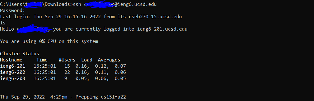 ssh X@ieng6.ucsd.edu - You should see a “Password:” feedback like this and at that point, type the password you set for the course specific account